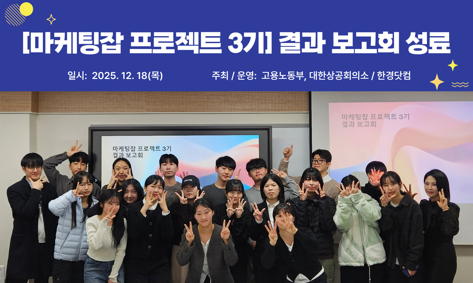 [청년일경험ㅣ마케팅잡 프로젝트]는 고용노동부와 대한상공회의소가 주관하고, 한경닷컴이 운영하는 청년 실무형 프로젝트입니다. 밸류멘토가 함께 과정을 설계하고 멘토링하며, 죽이야기, 미도인이 참여했습니다. 청년팀은 AI·데이터 기반의 마케팅으로 '콘텐츠 120만 뷰 돌파'라는 성과와 '콘텐츠 제작 역량 48.1% 향상'이라는 결과를 확보할 수 있었습니다.